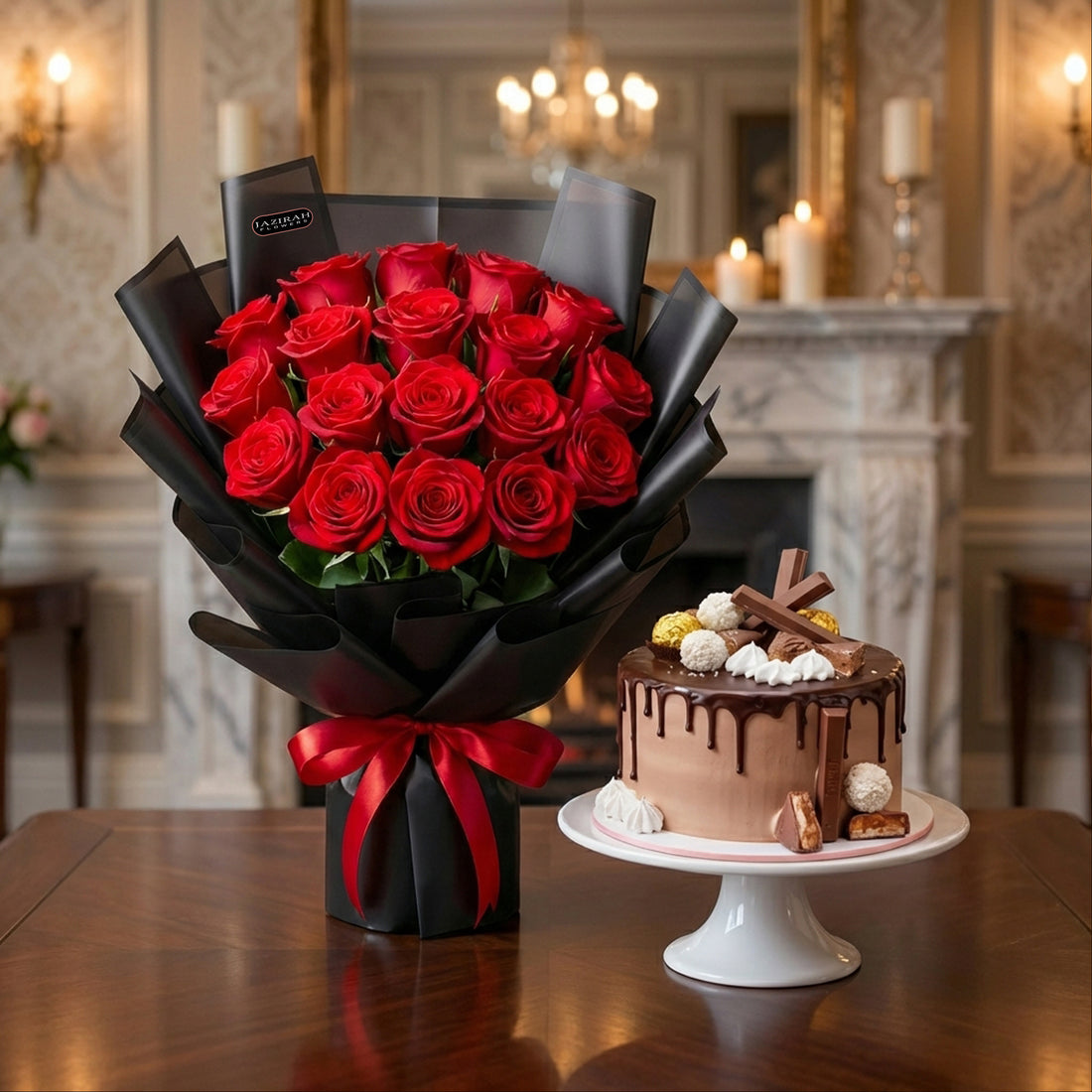 Luxury Red Roses Bouquet with Chocolate Cake | Romantic Gift Combo UAE