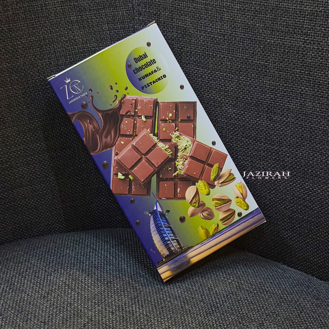 Indulge in the authentic taste of Dubai with this luxurious Kunafa & Pistachio Chocolate Bar...