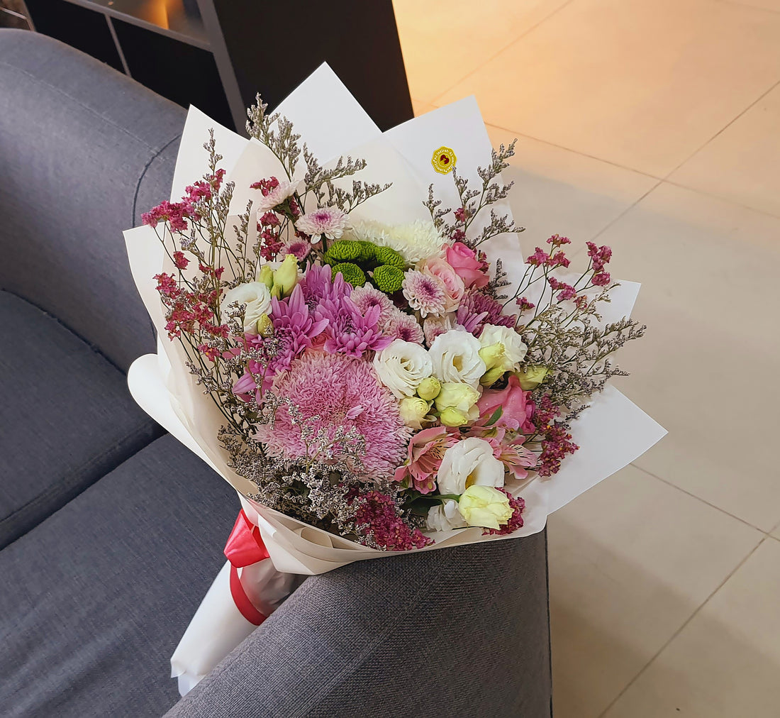 Elegant Mixed Flower Bouquet – Pink, White & Green Tones
