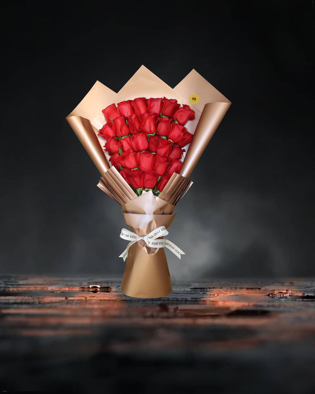 A bouquet of red roses speaks volumes without the need for words. Representing unwavering love...