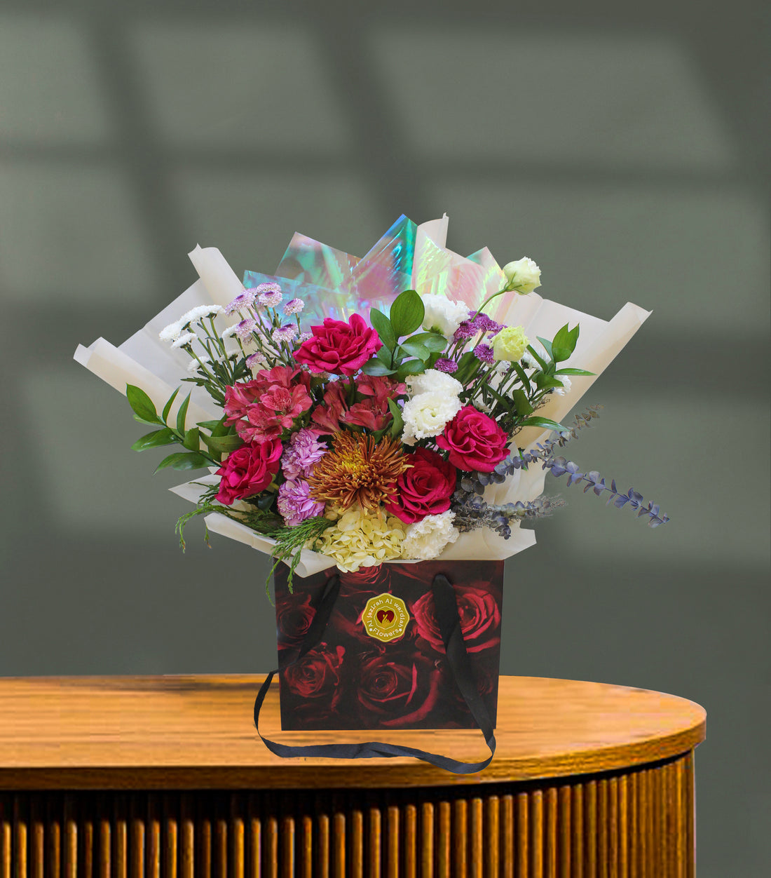 Elegant Bloom Bag: Flower Bouquet in a Stylish Carry Bag